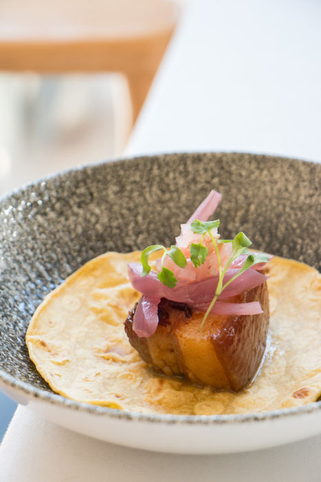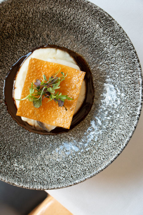 Flan cremoso de queso, manzana e "intxaursaltsa"